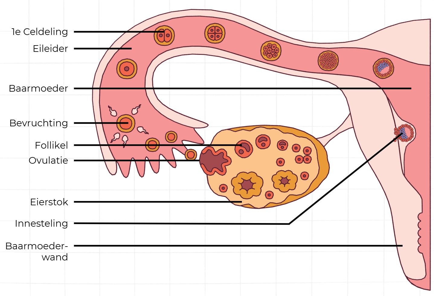 - Ovulatie: Het vrijkomen van een eicel uit een eierstok.
